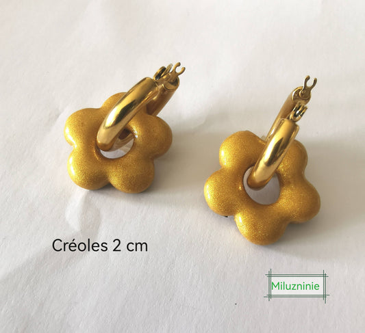 Pampilles – Reflets dorés | Fimo et résine artisanale | Interchangeables pour créoles