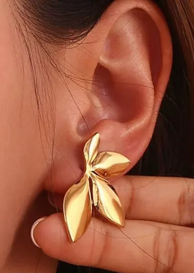 Boucles d’oreilles pétales de fleurs dorées – Acier inoxydable – Bijou élégant
