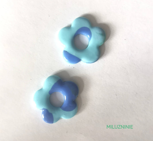 Boucles d'oreilles créoles en acier inoxydable avec pampilles (fleurs) bleu en Fimo – faites main & interchangeables (Copie) (Copie)