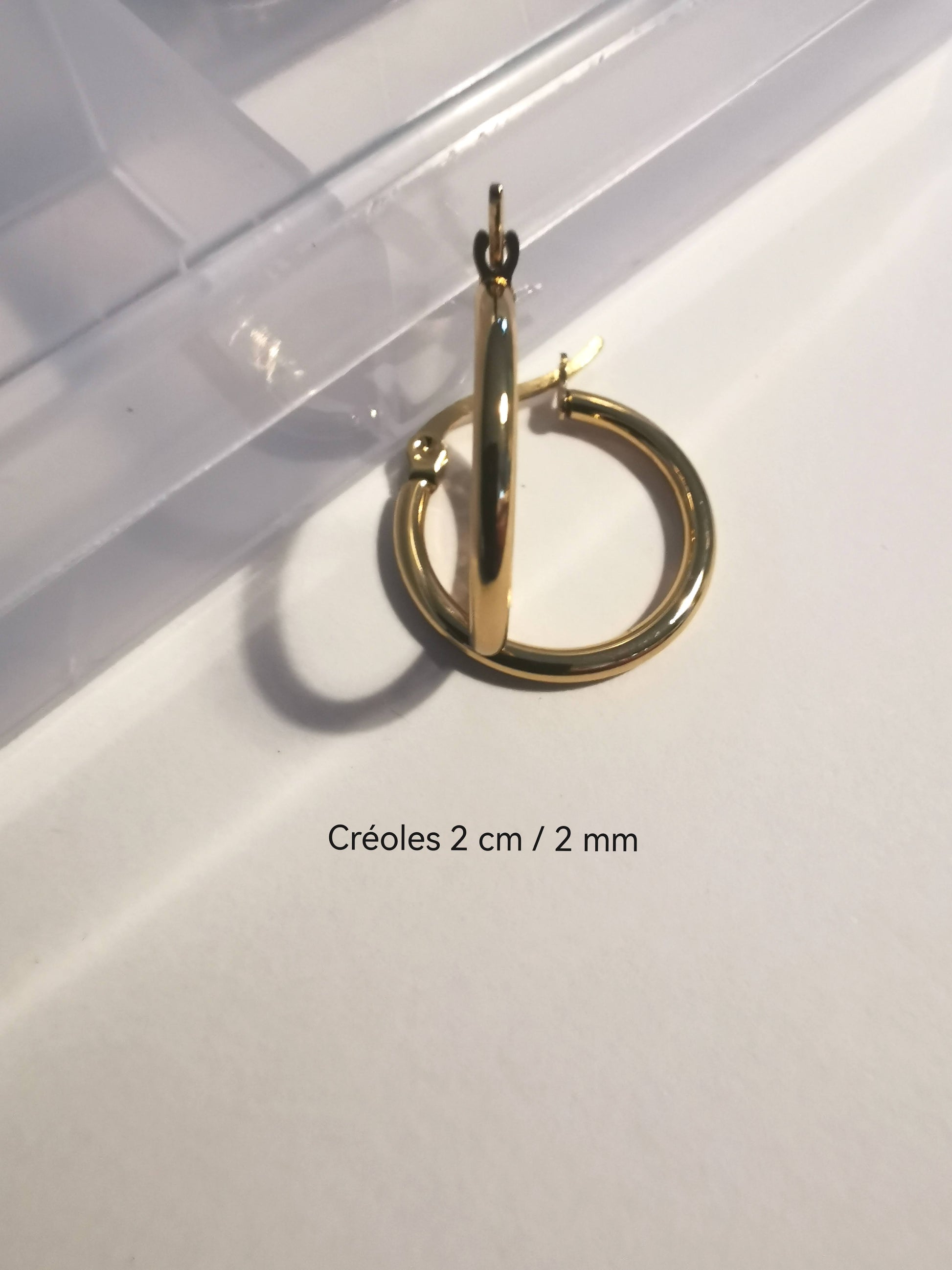 Créoles dorées 2 cm en acier inoxydable hypoallergénique. Élégantes, résistantes à l’eau et au temps, parfaites pour vos pampilles interchangeables.