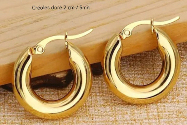 Créoles dorées 2 cm en acier inoxydable hypoallergénique. Élégantes, résistantes à l’eau et au temps, parfaites pour vos pampilles interchangeables.