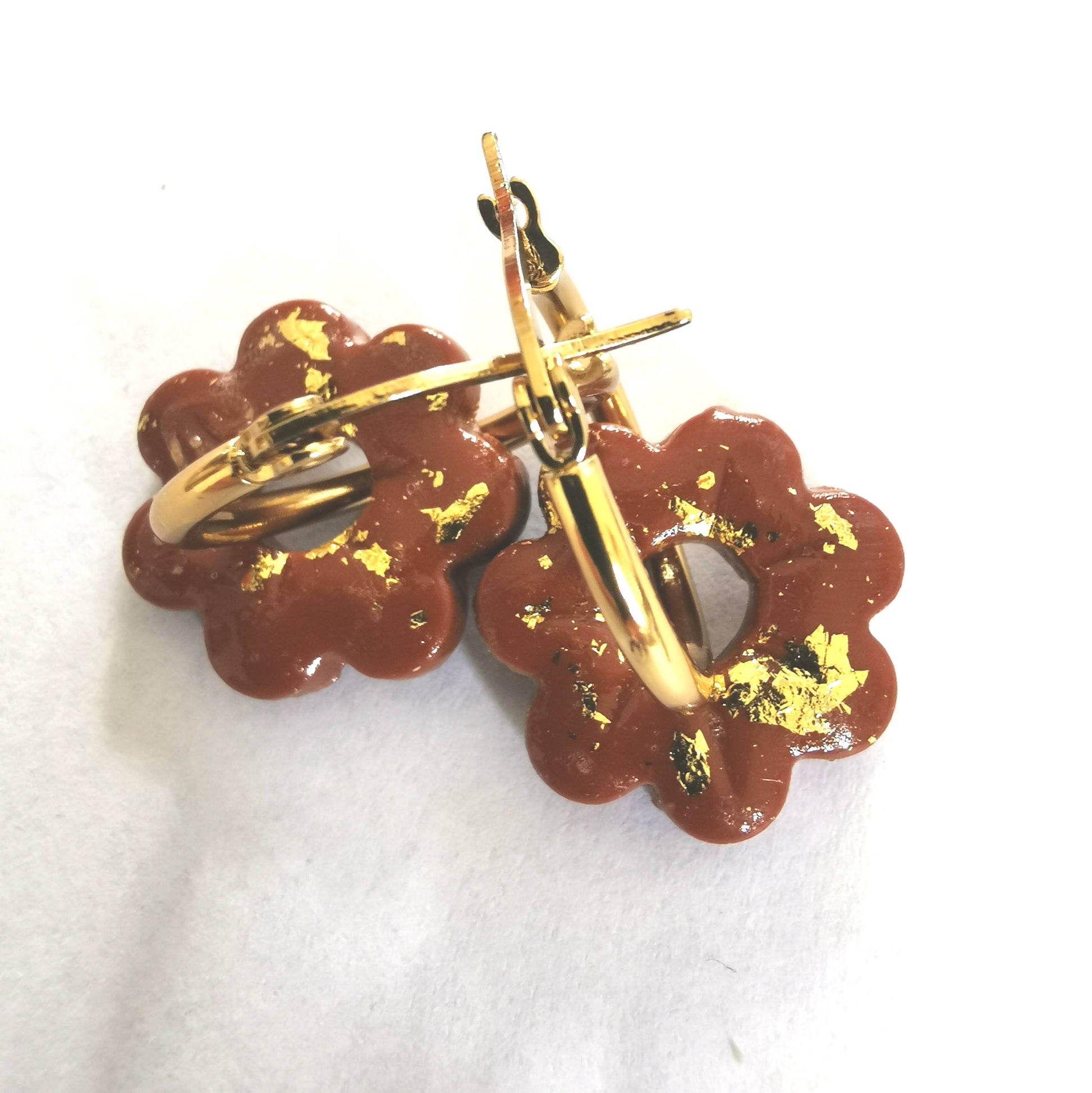 Ajoutez une touche florale et élégante à vos boucles d'oreilles grâce à ces pampilles en pâte polymère (Fimo), réalisées entièrement à la main. Leur belle teinte chocolat et or apporte fraîcheur et délicatesse à votre look.